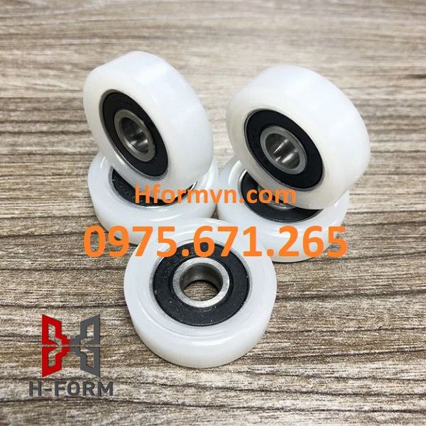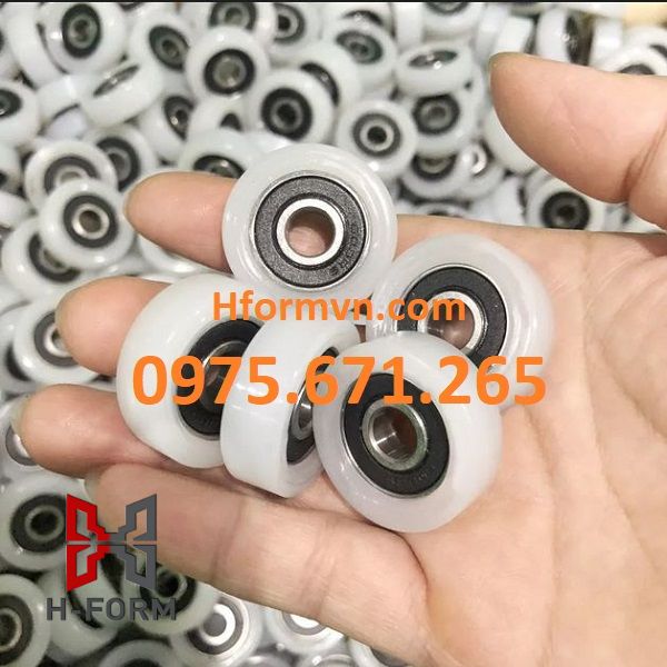 Vật liệu chế tạo bánh xe con lăn vòng bi 608 thường là nhựa PA