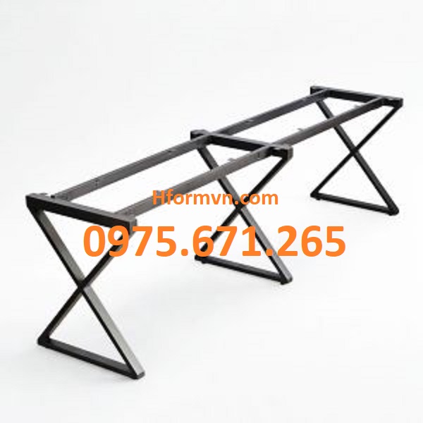 Hai chân tam giác đặt đối xứng, phù hợp với bàn dài như bàn làm việc nhóm, bàn họp, bàn ăn. Đây là mẫu được đặt gia công chân bàn sắt tam giác nhiều nhất hiện nay.
